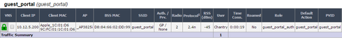 ā You should see that the client has a IP of 10.12.5.X and is unauthenticated (= the lock on the left is open/grey)
