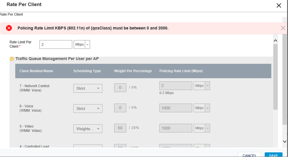 Even when I try to create basic QOS i'm getting error. Please do find the attachment also