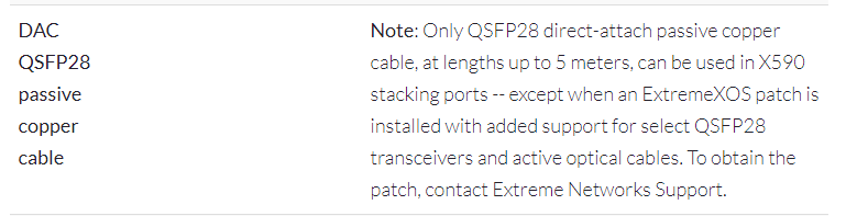 When it was old Support Compatibility Matrix for EXOS optics there was help (prompt):