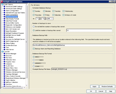 We back ours up daily (see attachment for screen shot). However, to get it off the box we had to write a script and run it as a Kron job. I wonder if there is a way to grab the DB file from Inventory manager. That is how we backup everything else including our Wireless Controller. I'll look into it.