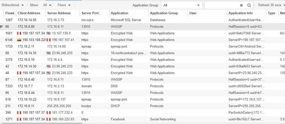 I currently have an XMC in the version in 8.4.1.24 and a virtual purview in the same version installed in Hyper-V. I am also using x440-G2 switches with EXOS version 22.5. I have configured through the XMC that Application Telemetry flows are sent. However in the dashboard I do not see the flows of users or servers. But I do have real-time flows from them.