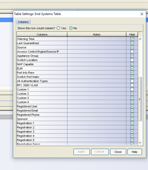 If you just want to pull out all the information that is current in NAC Manager you can unhide the registration information columns and filter on those to pull off all the information.