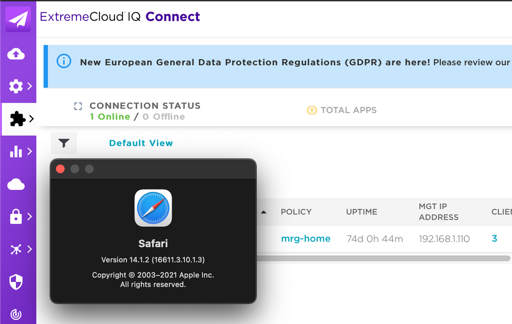 we have big Problems since 4 Weeks. we can’t open Extremecloud IQ with Safari..Is there anybuddy else who has the same problems?