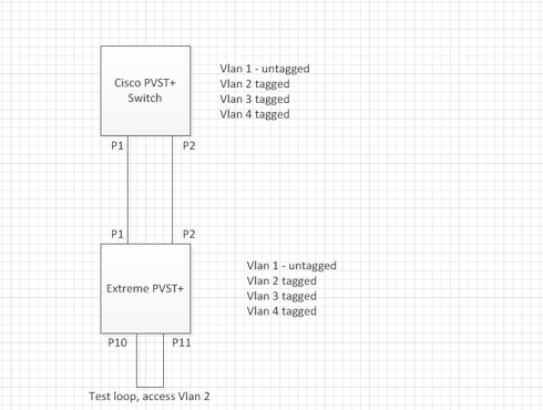 To be honest PVST+ is probably overkill for most applications, in fact being vlan UNaware has its advantages like when users loop data and voice vlans together. If in the example above the extreme was running 802.1d ieee spanning tree encapsulation, by enabling the default stpd S0. Then basic spanning tree will work between the Cisco and the Extreme and loops will be prevented, this is because the Cisco still sends untagged BPDUs in parallel to the tagged vlan aware ones this is for compatibility with ieee stp, I've been meaning to lab this up this second scenario at some point to make absolutely sure. if I'm correct this means all you really need to do on a out of the box extreme is type
