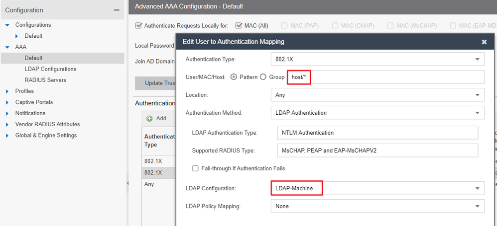 6- Configure AAA rule as per below and make sure you have correct match pattern for host and LDAP settings selected, usually it is host/* or *@* depending on how your directory service is setup.
