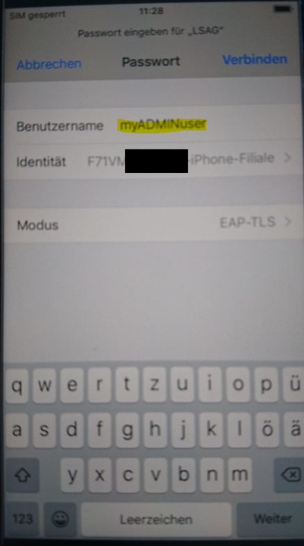 When using a non Windows Device it is possible to set a different Username/Identity that is sent to the Authentication Server.