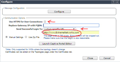 2. How to configure - client connect, sees Login page, push "Accept" button AND REDIRECT TO SOME SPECIFIC URL, like "http://extremenetworks.com"?