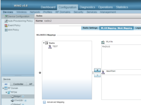 Then under Configuration - Devices / Profile - Interfaces - Radio2 - WLAN / MESH mapping assign the MCX you created