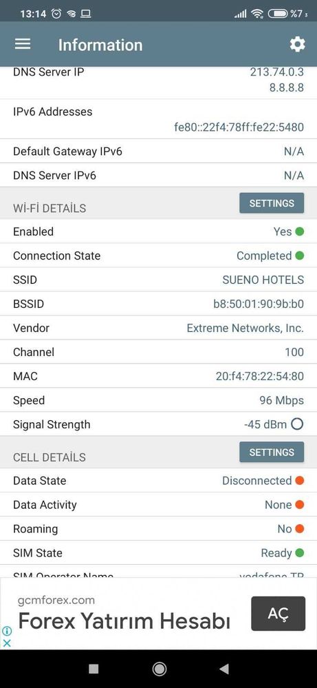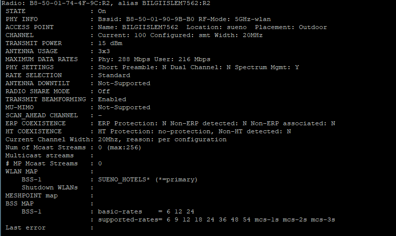 As you can see the pictures below for AP7562 and AP7532 radio2 i cant get maximum data rates. When i connect an Aruba 275 in the system same location, i can see maximum data rate 866 Mbps. With same phone when i connect to 75xx AP’s, despite being near the AP and see -45 dbm, i can only see maximum speed 96Mbps in channel 100.