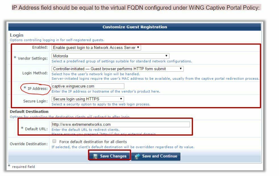 Also, on Page 10 - Clearpass side config; it says: IP Address field should be equal to the virtual FQDN configured under WiNG Captive Portal Policy: