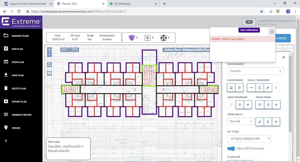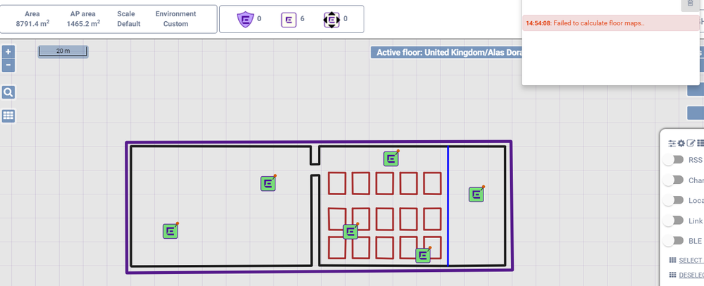 I am trying to create a new wireless design but whenever I activate to see the RSS heatmap it shows me an error that could not be generated nor the report, since I try from several computers and several plans, is there any flaw in the planner in this moment?