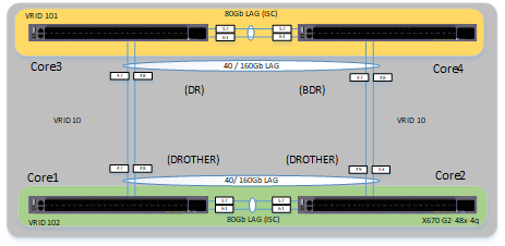 I'm also running routing fabric mode on all the VRRP instances and OSPF between each of the core routers.