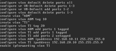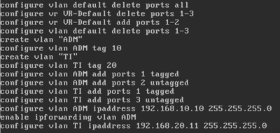 Hello! I have studied about configuration of ExtremeXOS with the simulator GNS3. I configured a small network with two switches and three computers, in two vlans: The "Win7" and "LinuxTinyCore" PCs communicate with each other, but the "LinuxCore...
